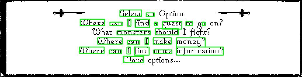 Generate training data. We're going to use synthetic training data. Tesseract has a utility that will generate images a corresponding character bounding boxes from text (text2image). While I could have used a variety of text corpora, I chose to use a bunch of text found in the game. I used the database in osrsbox-db. I found the fonts in RuneStar/fonts. I could have performed some data augmentation but chose not to – for this use case; the text is always printed uniformly (same spacing, orientation, etc.).