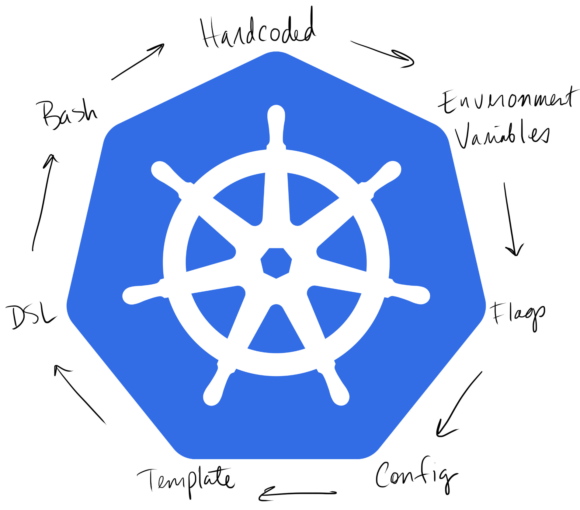 The Heptagon of Configuration is a term I'm coining to describe a pattern I've observed in software configuration, where configuration evolves through specific, increasing levels of flexibility and complexity before returning to the restrictive and simple implementation.