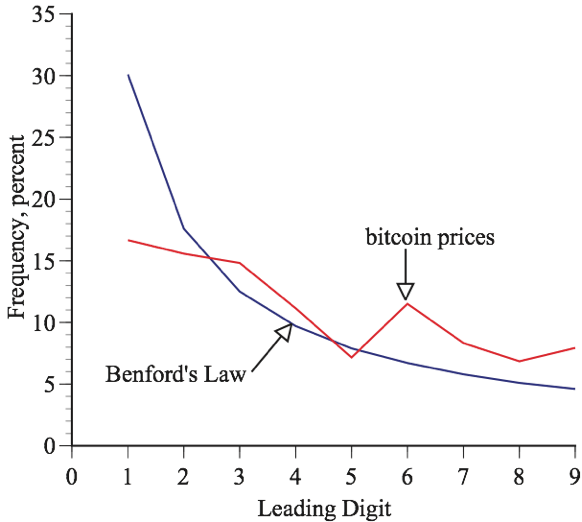 More recently, I came across a paper showing that fraudulent Bitcoin transactions could be spotted with Benford's law.