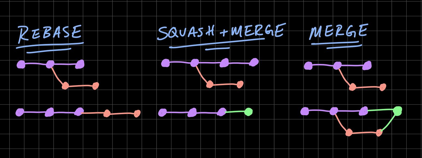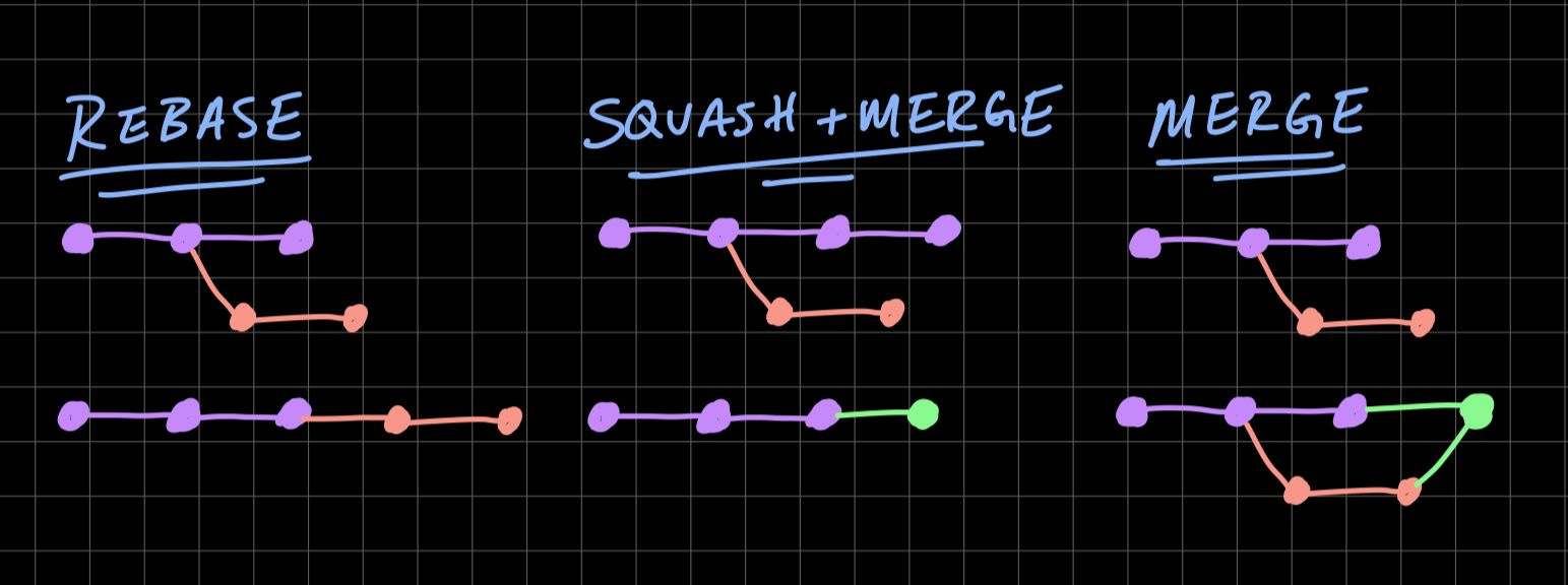 When version controlling your code with git, there are generally three choices when merging feature branches into main. Each has its quirks, so which one should you use?