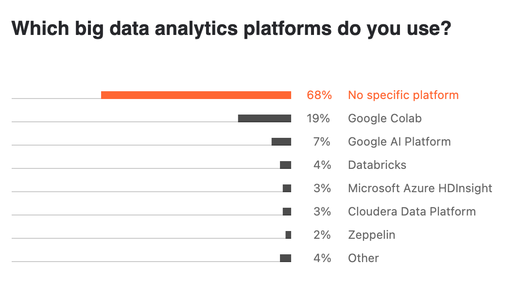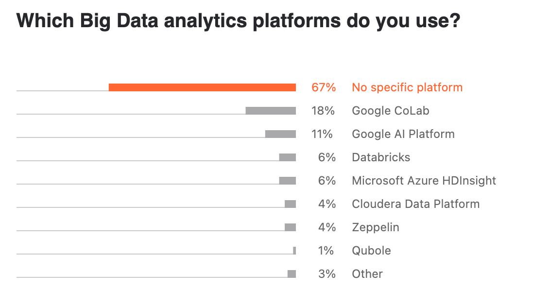 My guess as to why nobody has "won" the analytics platform war yet is because the industry is shifting away from platforms and towards a "modern data stack" that combines best-of-breed SaaS tools. It's interesting to see the correlation with Databricks/Spark usage.