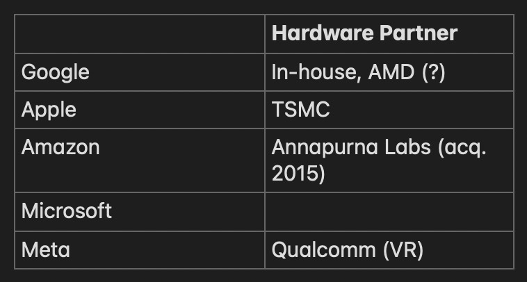 I left NVIDIA out of this, as it seems like they aren’t restricting themselves to a single cloud provider and are even moving up the stack via open-source.
