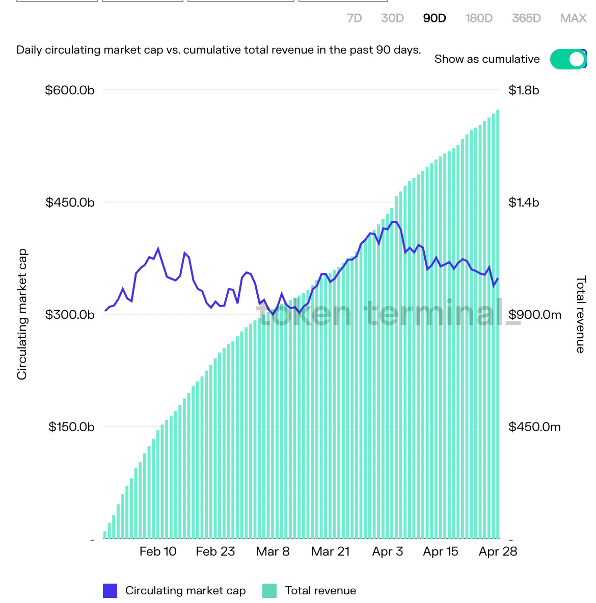 Ethereum generated $1.7 billion in transaction fees in the last 90 days. I find this fascinating for a few reasons.